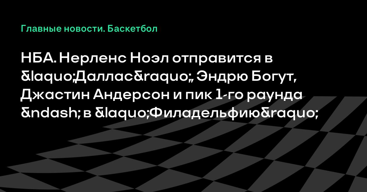 НБА. Нерленс Ноэл отправится в «Даллас», Эндрю Богут, Джастин Андерсон и пик 1-го раунда – в «Филадельфию»
