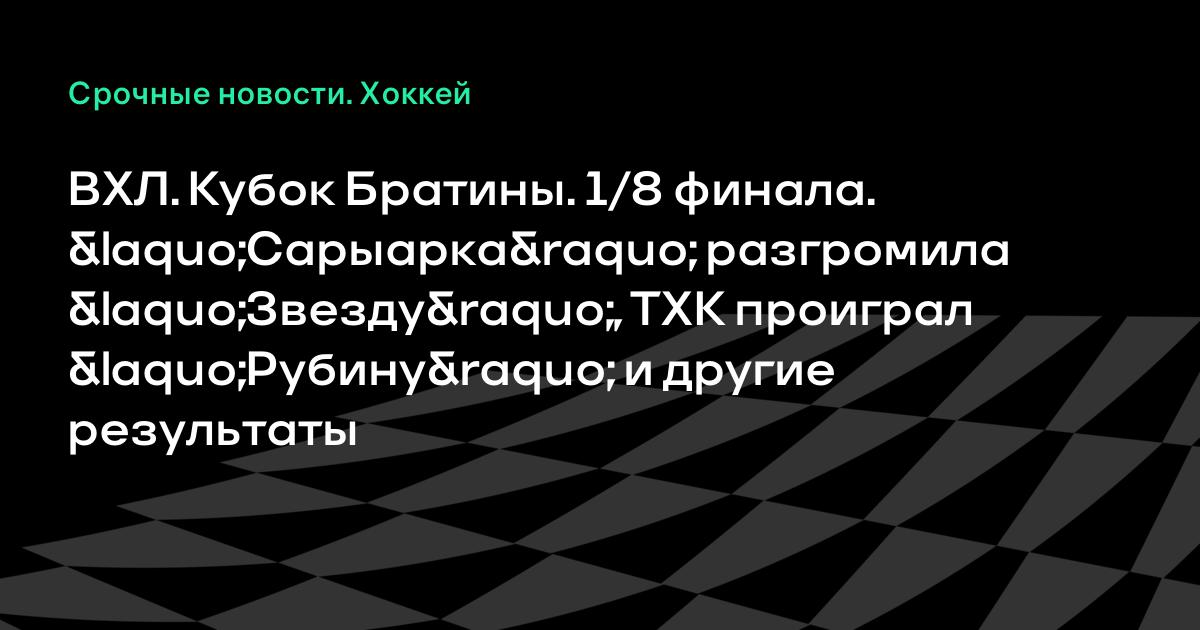 ВХЛ. Кубок Братины. 1/8 финала. «Сарыарка» разгромила «Звезду», ТХК проиграл «Рубину» и другие результаты