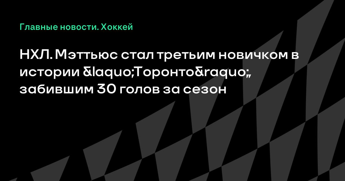 НХЛ. Мэттьюс стал третьим новичком в истории «Торонто», забившим 30 голов за сезон