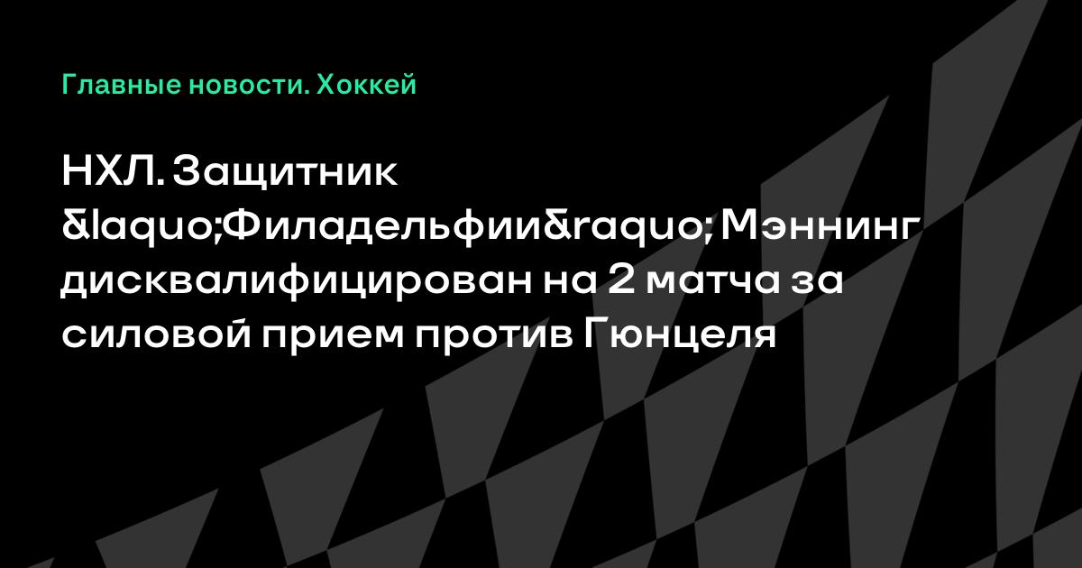 НХЛ. Защитник «Филадельфии» Мэннинг дисквалифицирован на 2 матча за силовой прием против Гюнцеля