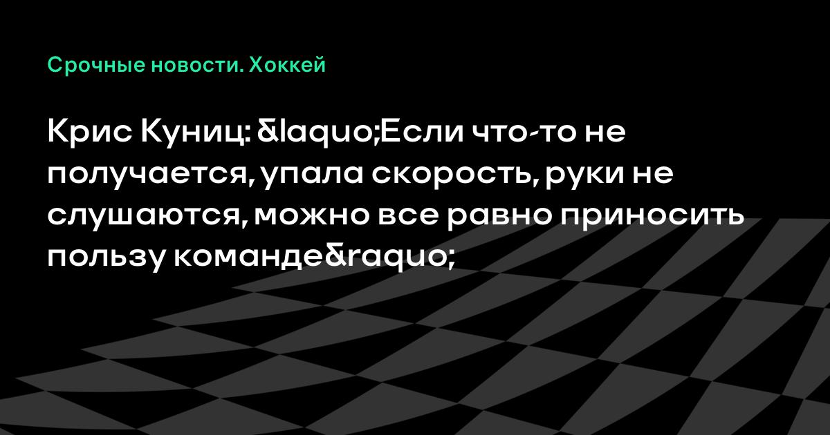 Крис Куниц: «Если что-то не получается, упала скорость, руки не слушаются, можно все равно приносить пользу команде»