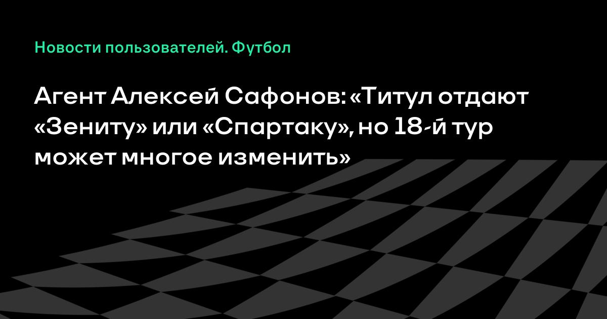 Агент Алексей Сафонов: «Титул отдают «Зениту» или «Спартаку», но 18-й тур может многое изменить»