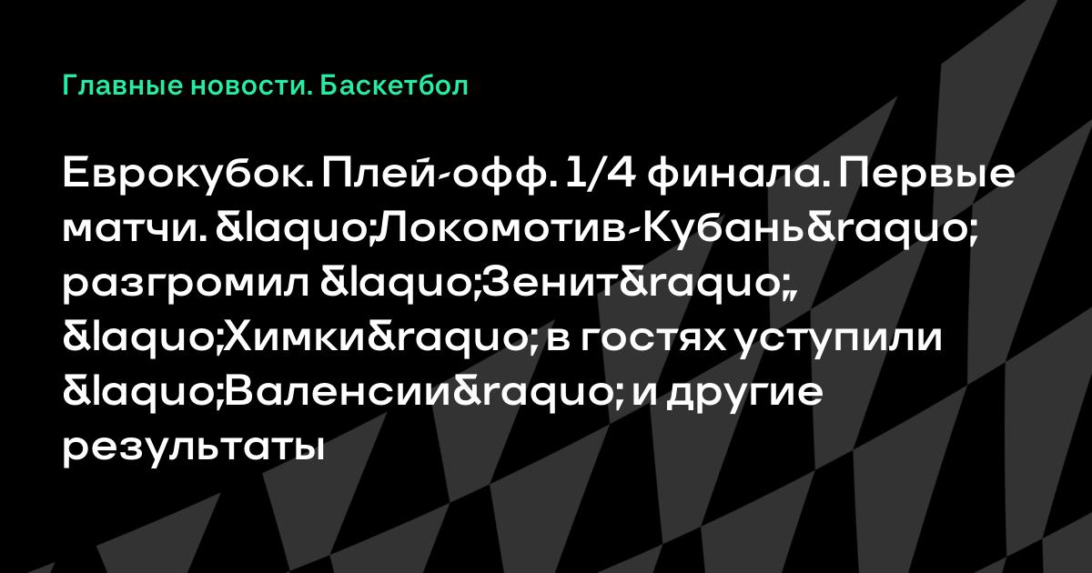 Еврокубок. Плей-офф. 1/4 финала. Первые матчи. «Локомотив-Кубань» разгромил «Зенит», «Химки» в гостях уступили «Валенсии» и другие результаты