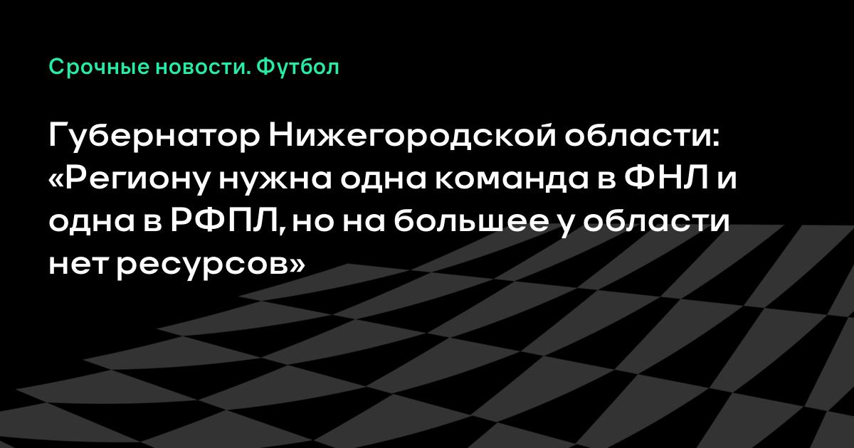 Губернатор Нижегородской области: «Региону нужна одна команда в ФНЛ и одна в РФПЛ, но на большее у области нет ресурсов»