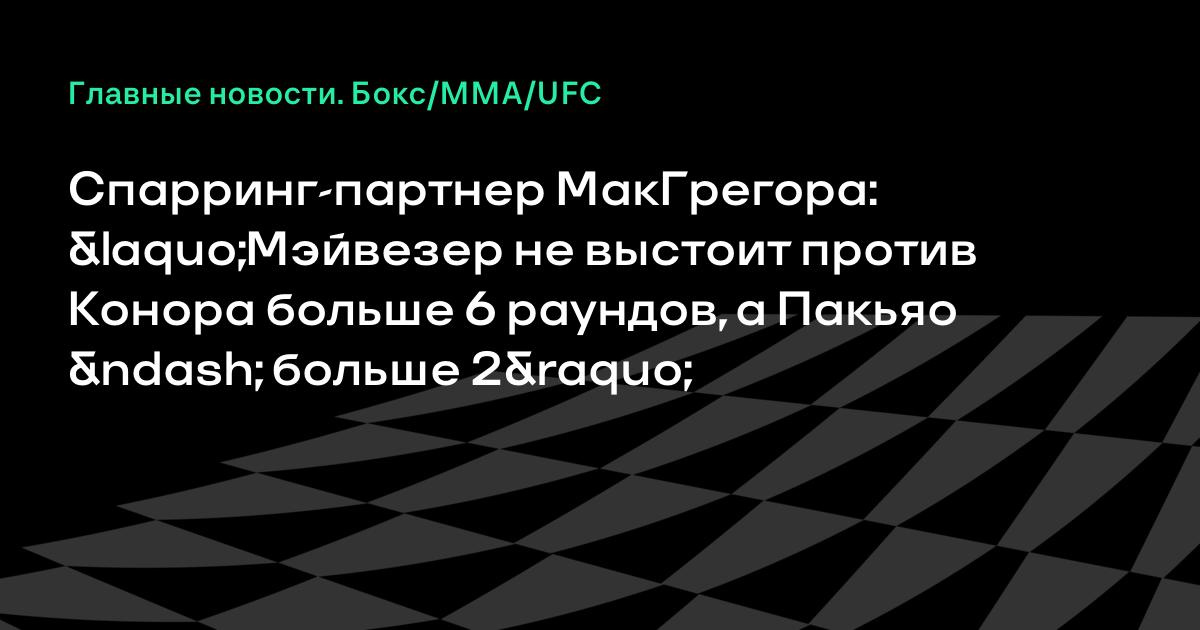 «Я представляют, сколько негатива выльется на меня после этих слов, но не вижу вариантов, чтобы Мэйвезер выстоял против Конора больше шести раундов. А Мэнни Пакьяо не продержится больше двух раундов.