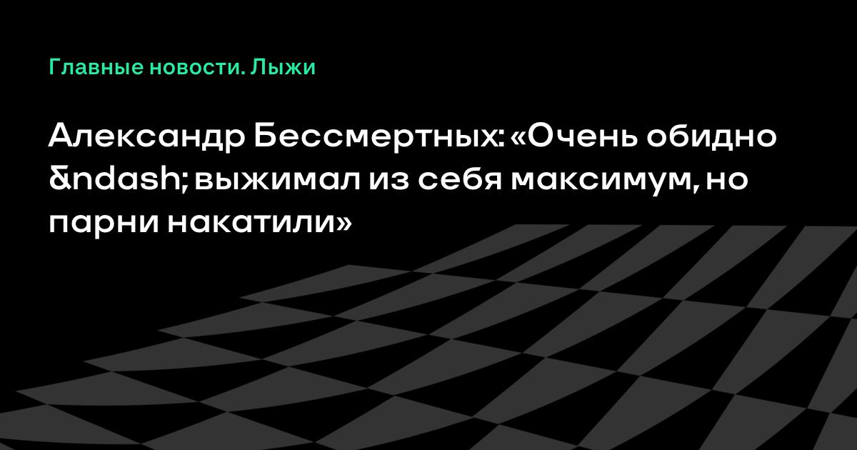 Российский лыжник Александр Бессмертных прокомментировал свое выступление в гонке с раздельного старта на 15 км «классикой» на чемпионате мира в Лахти (4-е место).