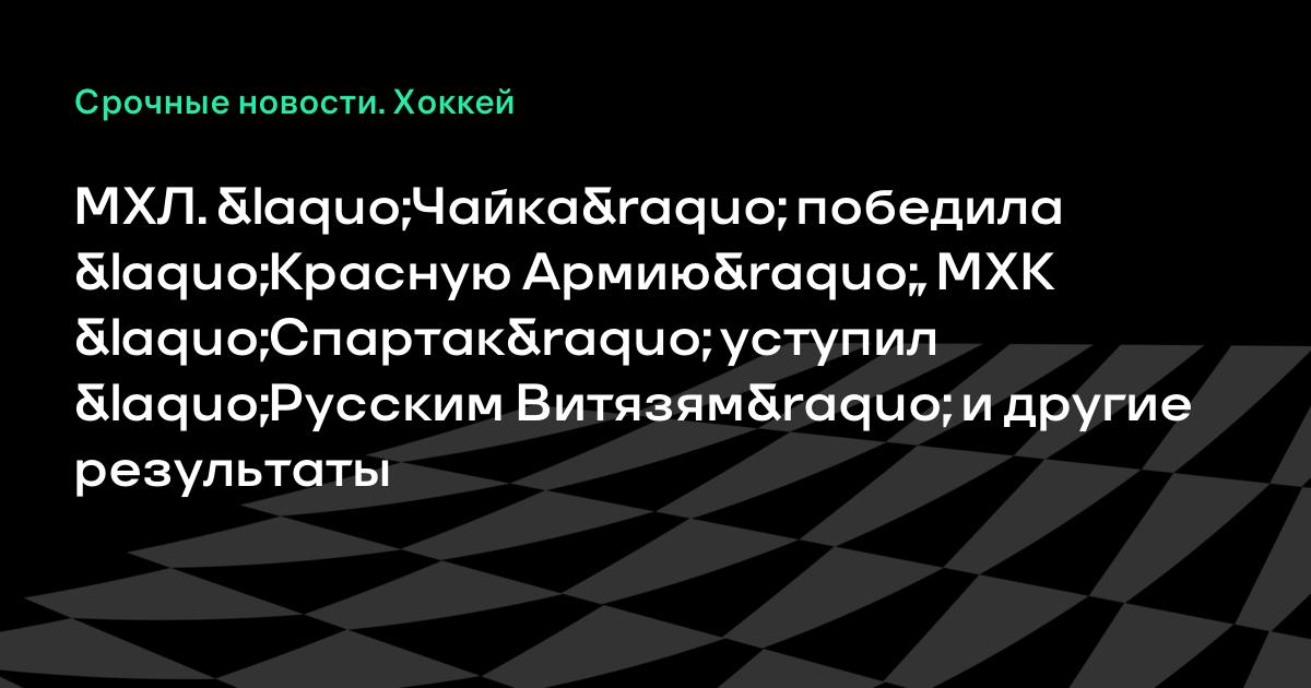 МХЛ. «Чайка» победила «Красную Армию», МХК «Спартак» уступил «Русским Витязям» и другие результаты
