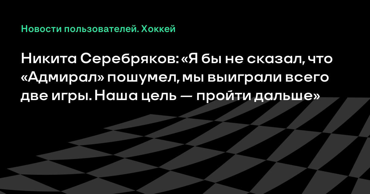 Никита Серебряков: «Я бы не сказал, что «Адмирал» пошумел, мы выиграли всего две игры. Наша цель — пройти дальше»