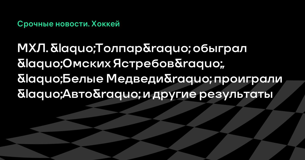 МХЛ. «Толпар» обыграл «Омских Ястребов», «Белые Медведи» проиграли «Авто» и другие результаты