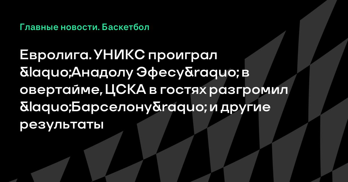 Евролига. УНИКС проиграл «Анадолу Эфесу» в овертайме, ЦСКА в гостях разгромил «Барселону» и другие результаты