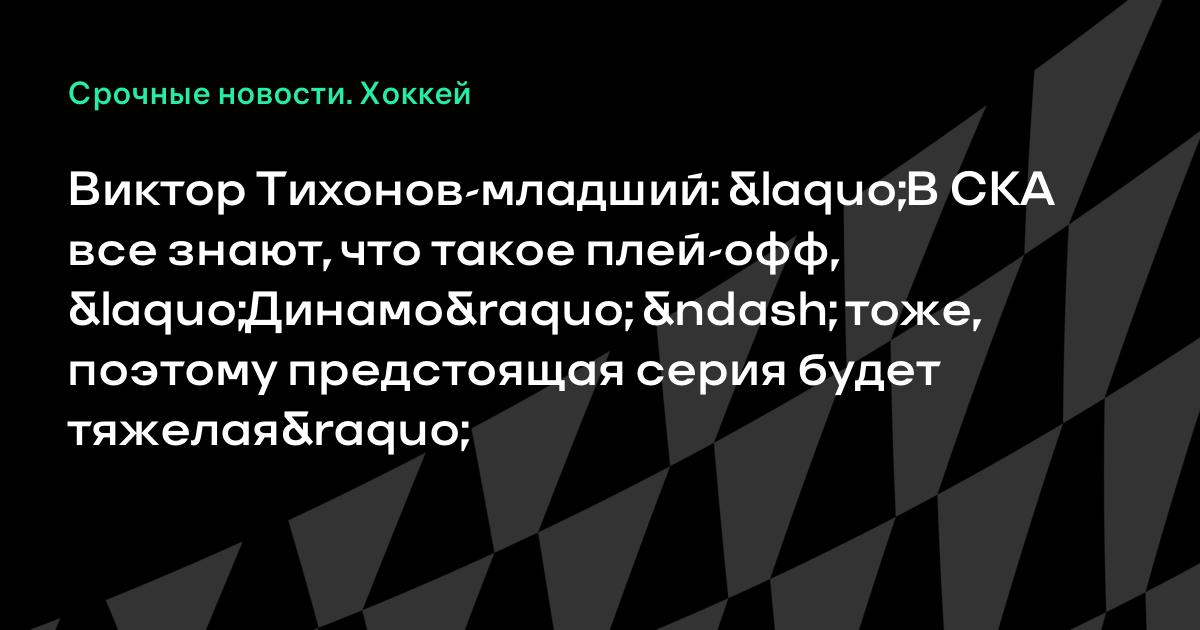 Виктор Тихонов-младший: «В СКА все знают, что такое плей-офф, «Динамо» – тоже, поэтому предстоящая серия будет тяжелая»