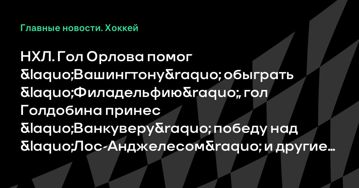 НХЛ. Гол Орлова помог «Вашингтону» обыграть «Филадельфию», гол Голдобина принес «Ванкуверу» победу над «Лос-Анджелесом» и другие результаты