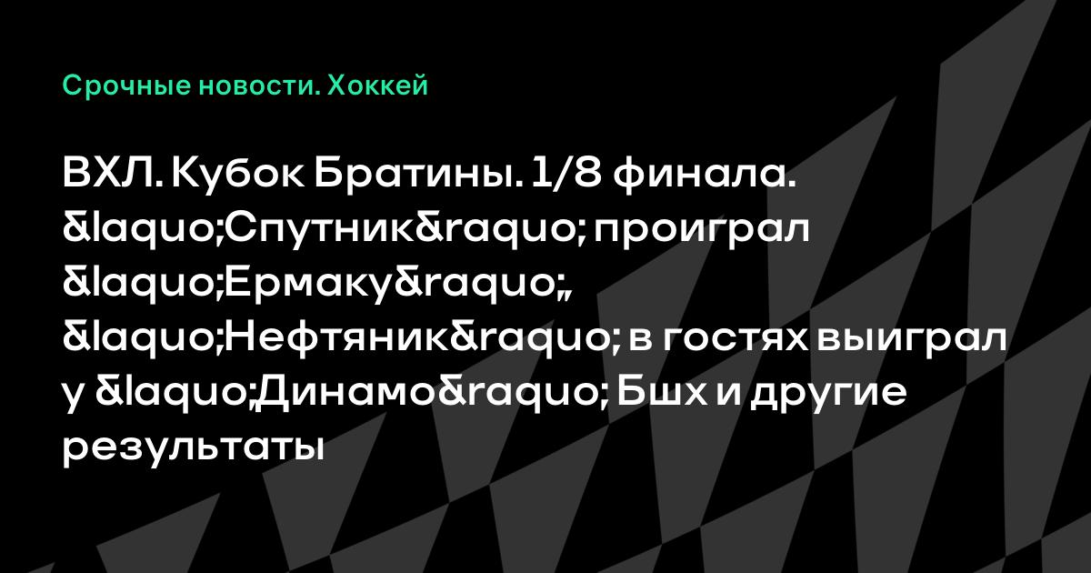 ВХЛ. Кубок Братины. 1/8 финала. «Спутник» проиграл «Ермаку», «Нефтяник» в гостях выиграл у «Динамо» Бшх и другие результаты