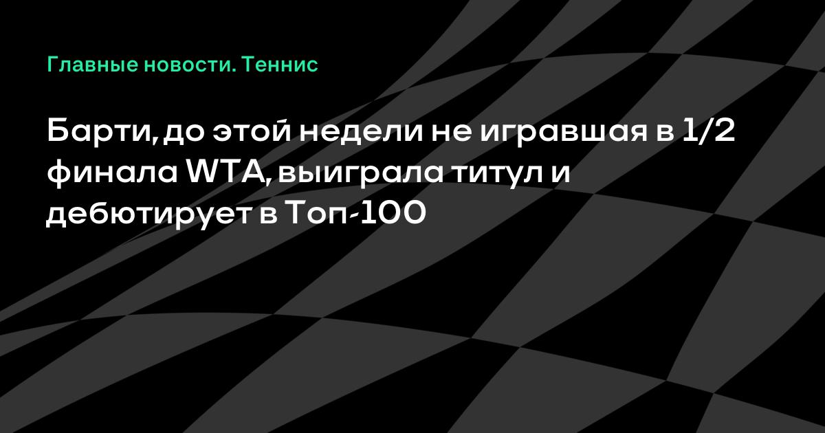Барти, до этой недели не игравшая в 1/2 финала WTA, выиграла титул и дебютирует в Топ-100