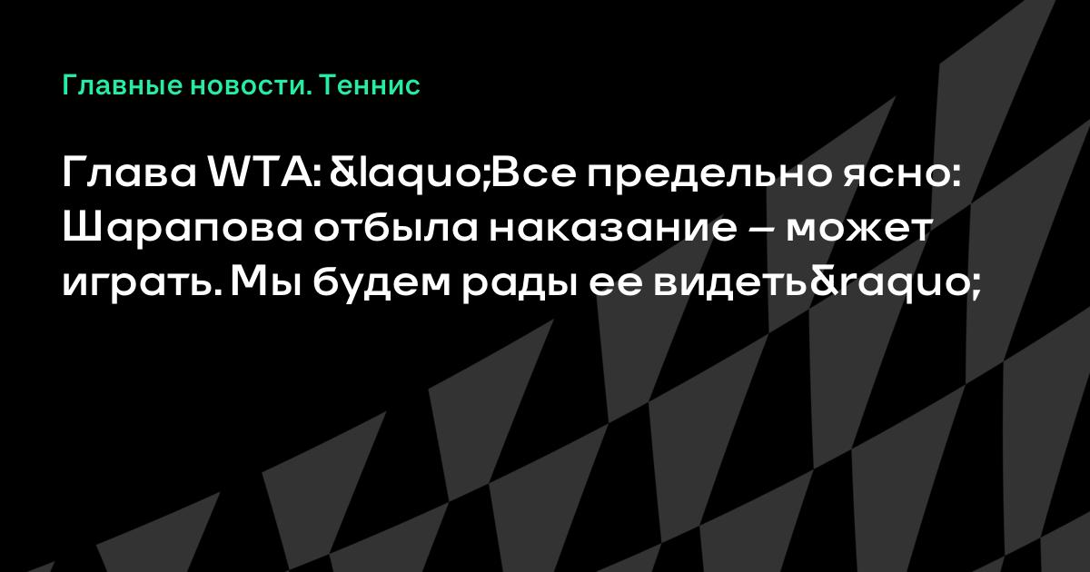 Глава WTA: «Все предельно ясно: Шарапова отбыла наказание – может играть. Мы будем рады ее видеть»