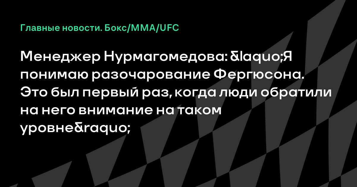 Менеджер Нурмагомедова: «Я понимаю разочарование Фергюсона. Это был первый раз, когда люди обратили на него внимание на таком уровне»