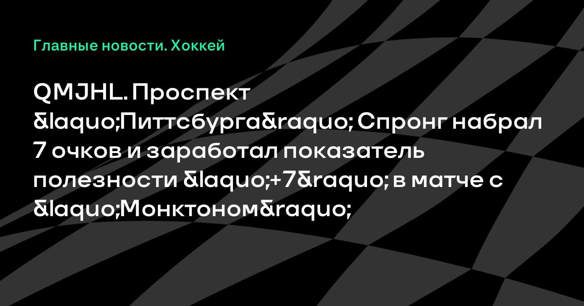 QMJHL. Проспект «Питтсбурга» Спронг набрал 7 очков и заработал показатель полезности «+7» в матче с «Монктоном»