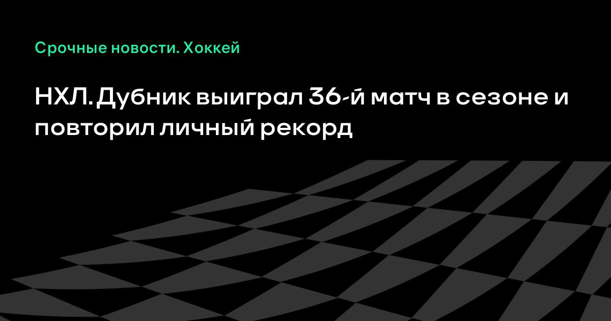 НХЛ. Дубник выиграл 36-й матч в сезоне и повторил личный рекорд