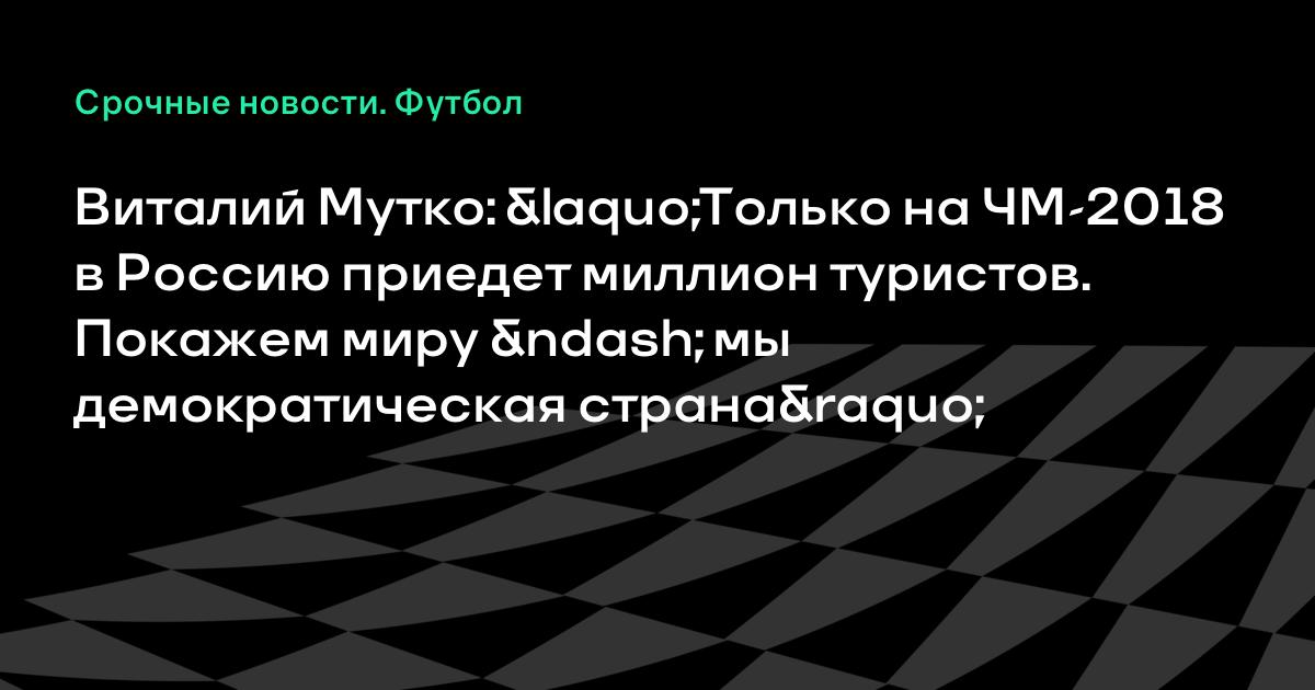 Виталий Мутко: «Только на ЧМ-2018 в Россию приедет миллион туристов. Покажем миру – мы демократическая страна»