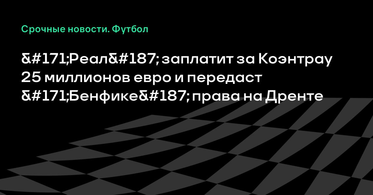 «Реал» заплатит за Коэнтрау 25 миллионов евро и передаст «Бенфике» права на Дренте