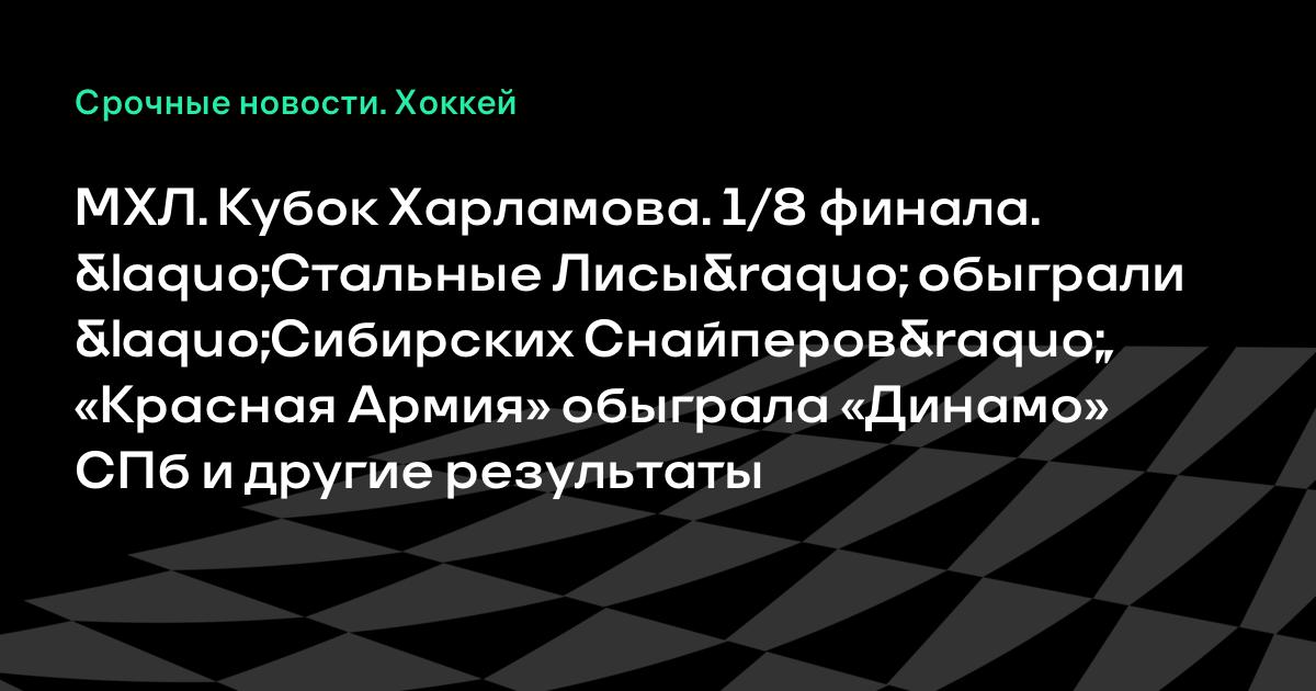 МХЛ. Кубок Харламова. 1/8 финала. «Стальные Лисы» обыграли «Сибирских Снайперов», «Красная Армия» обыграла «Динамо» СПб и другие результаты