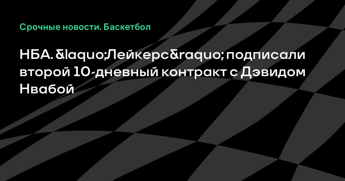 «Лейкерс» подписали второй 10-дневный контракт с защитником Дэвидом Нвабой, сообщает официальный сайт клуба.
