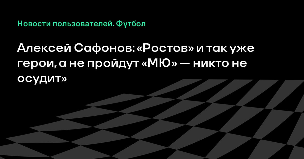 Алексей Сафонов: «Ростов» и так уже герои, а не пройдут «МЮ» — никто не осудит»