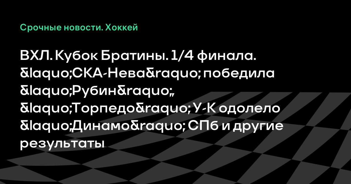 ВХЛ. Кубок Братины. 1/4 финала. «СКА-Нева» победила «Рубин», «Торпедо» У-К одолело «Динамо» СПб и другие результаты