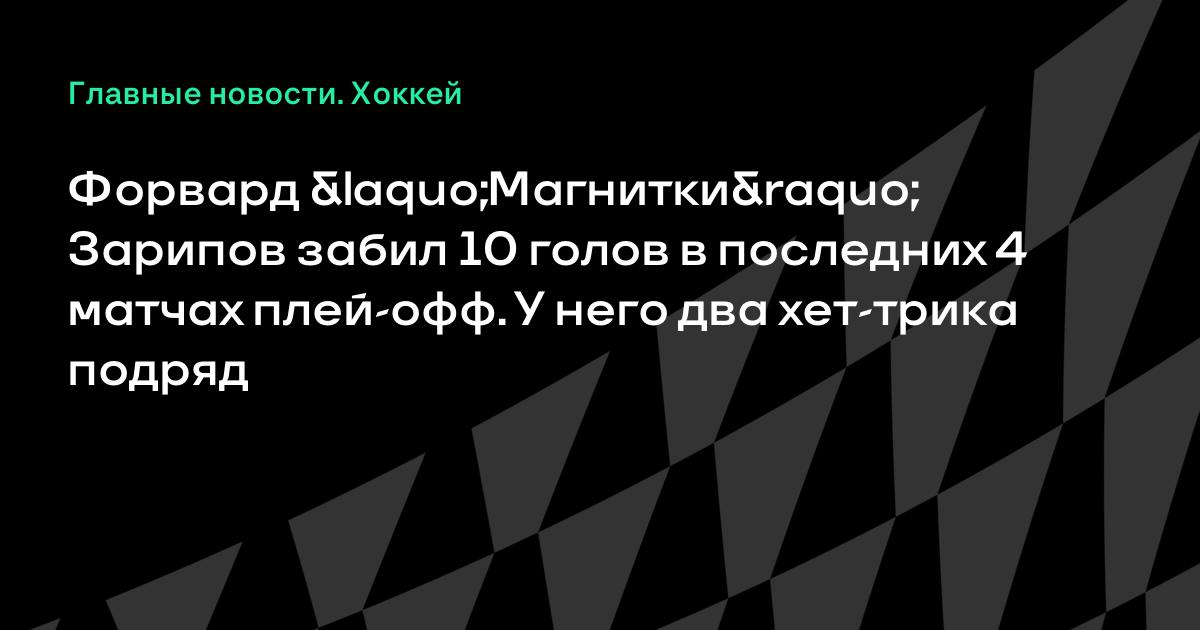 Форвард «Магнитки» Зарипов забил 10 голов в последних 4 матчах плей-офф. У него два хет-трика подряд