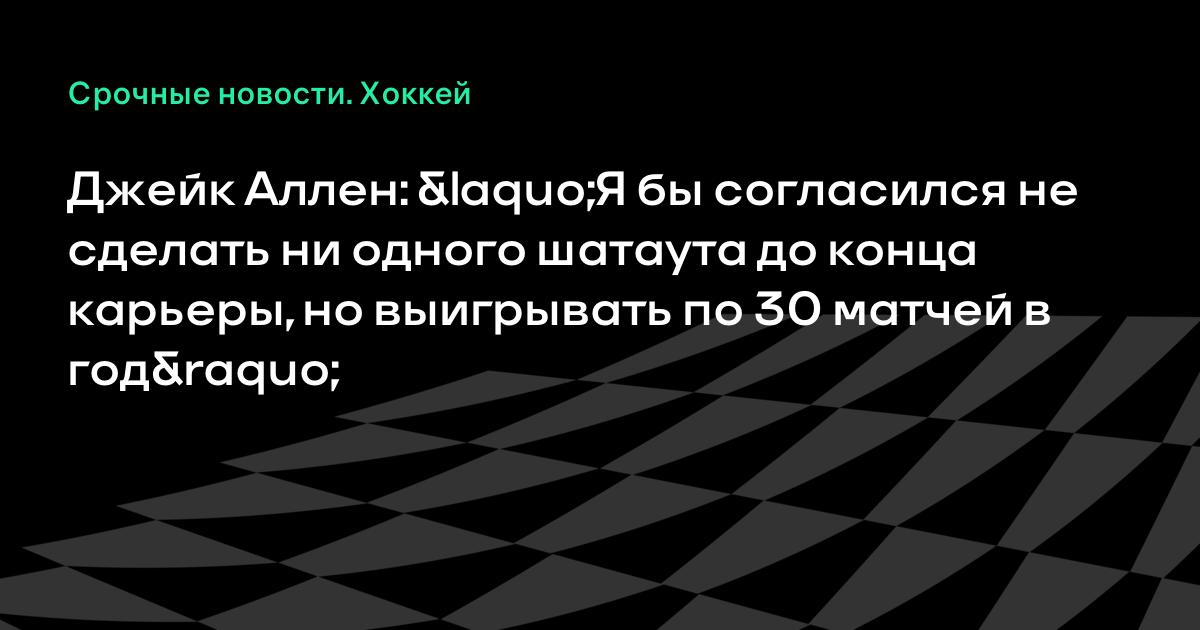 Джейк Аллен: «Я бы согласился не сделать ни одного шатаута до конца карьеры, но выигрывать по 30 матчей в год»