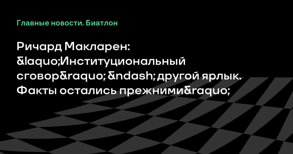 Ричард Макларен: «Институциональный сговор» – другой ярлык. Факты остались прежними»
