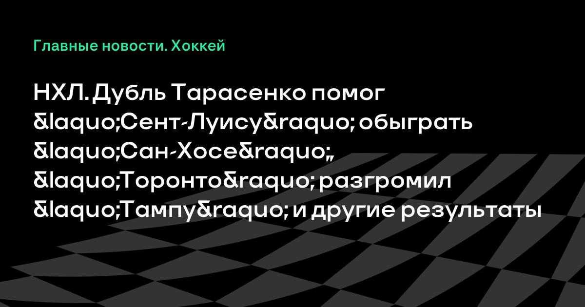 НХЛ. Дубль Тарасенко помог «Сент-Луису» обыграть «Сан-Хосе», «Торонто» разгромил «Тампу» и другие результаты