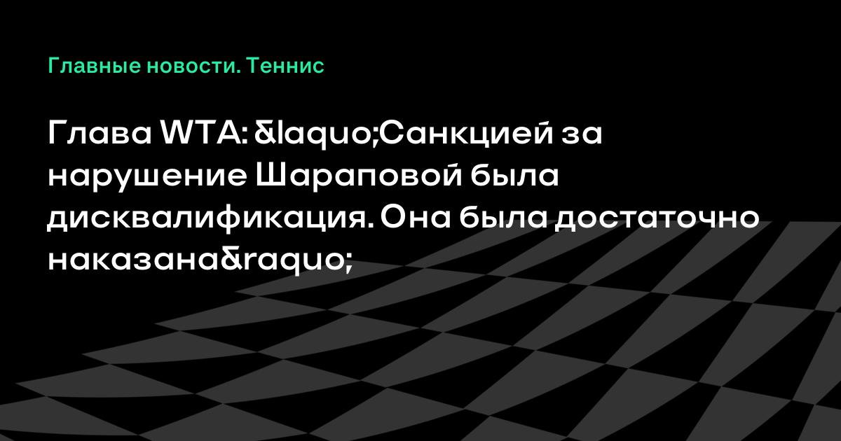 Глава WTA: «Санкцией за нарушение Шараповой была дисквалификация. Она была достаточно наказана»