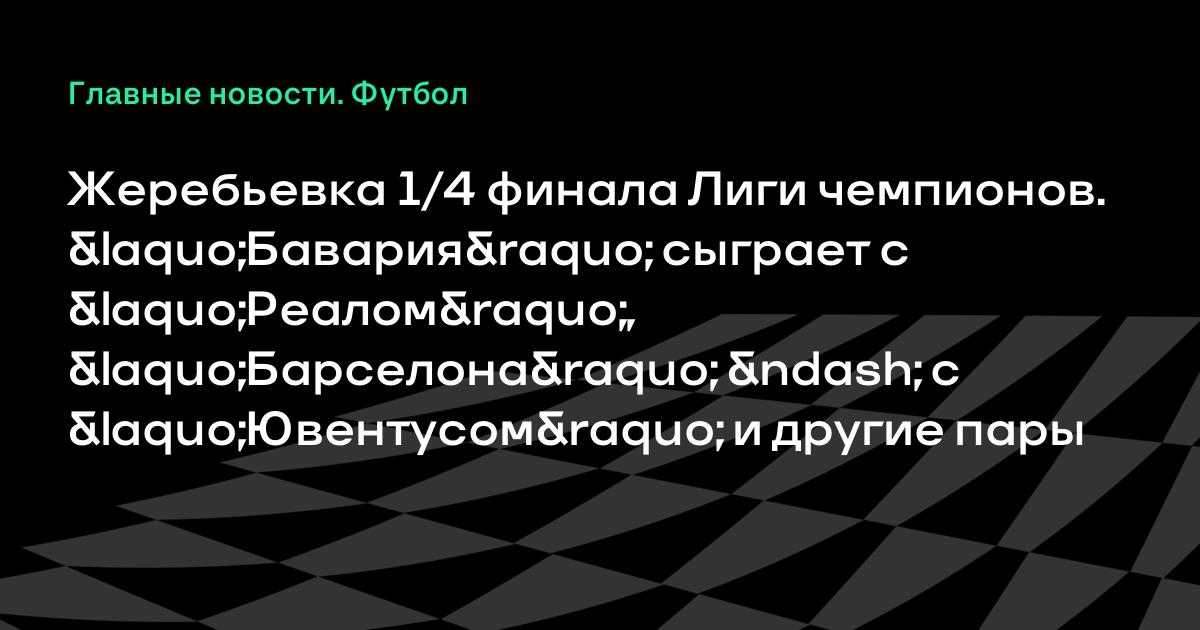 Жеребьевка 1/4 финала Лиги чемпионов. «Бавария» сыграет с «Реалом», «Барселона» – с «Ювентусом» и другие пары