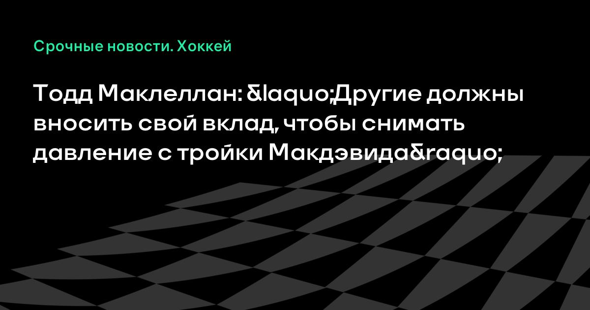 Тодд Маклеллан: «Другие должны вносить свой вклад, чтобы снимать давление с тройки Макдэвида»