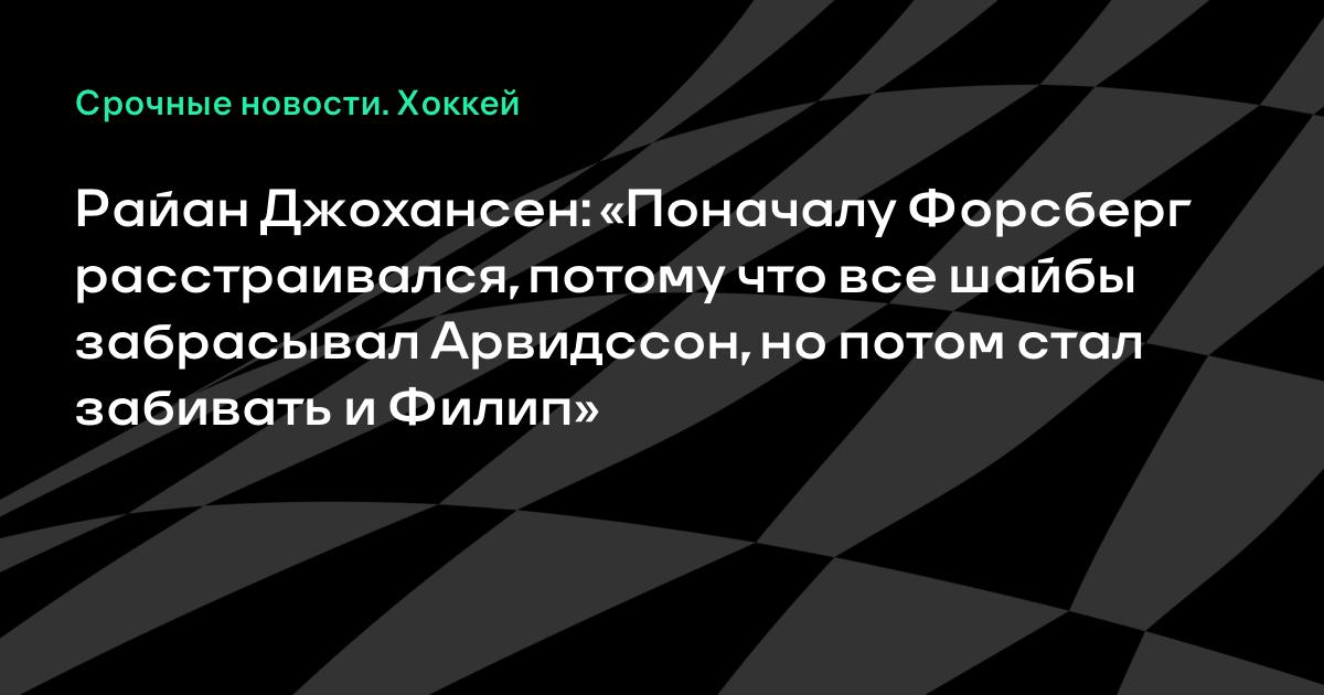 Райан Джохансен: «Поначалу Форсберг расстраивался, потому что все шайбы забрасывал Арвидссон, но потом стал забивать и Филип»
