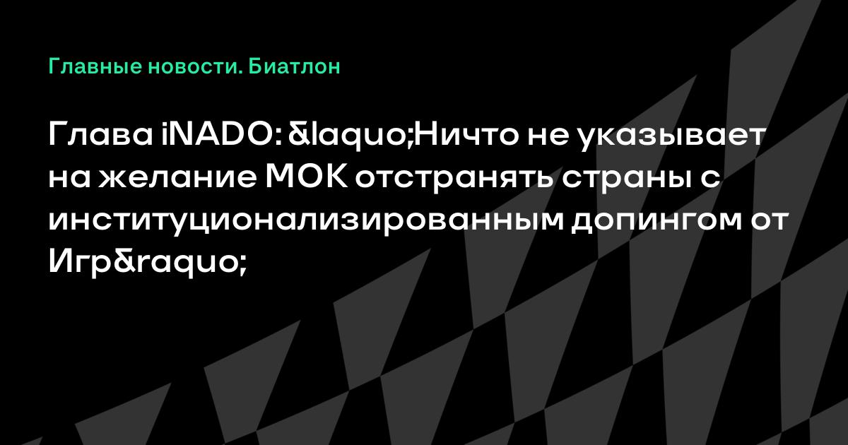 Глава iNADO: «Ничто не указывает на желание МОК отстранять страны с институционализированным допингом от Игр»