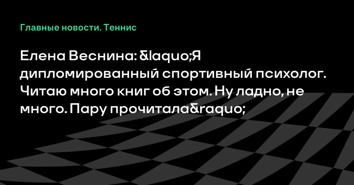 Елена Веснина: «Я дипломированный спортивный психолог. Читаю много книг об этом. Ну ладно, не много. Пару прочитала»