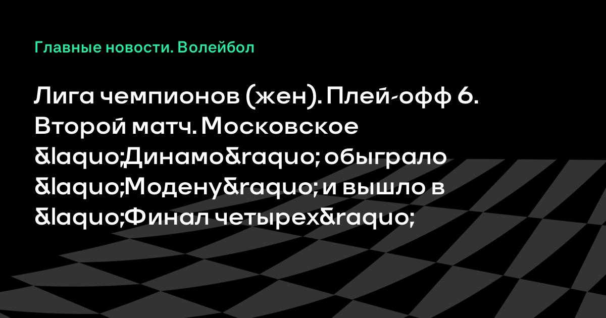 Сегодня состоялся второй матч плей-офф 6 женской волейбольной Лиги чемпионов между московским «Динамо» и итальянской «Моденой». Победу вновь одержали представительницы российского клуба (3-0).
