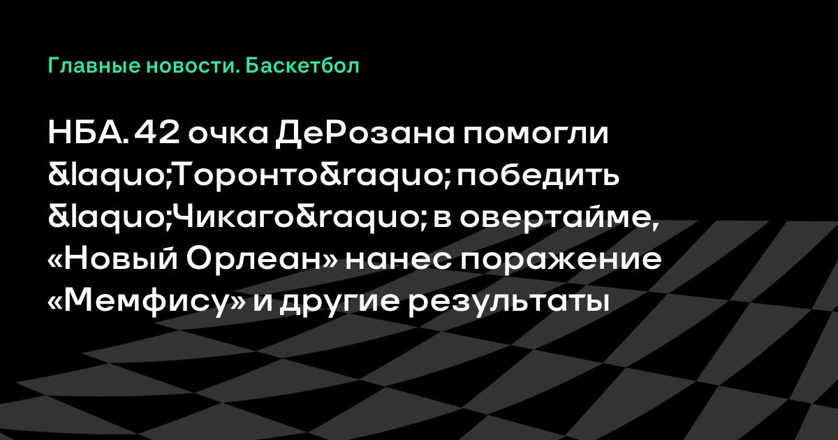 НБА. 42 очка ДеРозана помогли «Торонто» победить «Чикаго» в овертайме, «Новый Орлеан» нанес поражение «Мемфису» и другие результаты