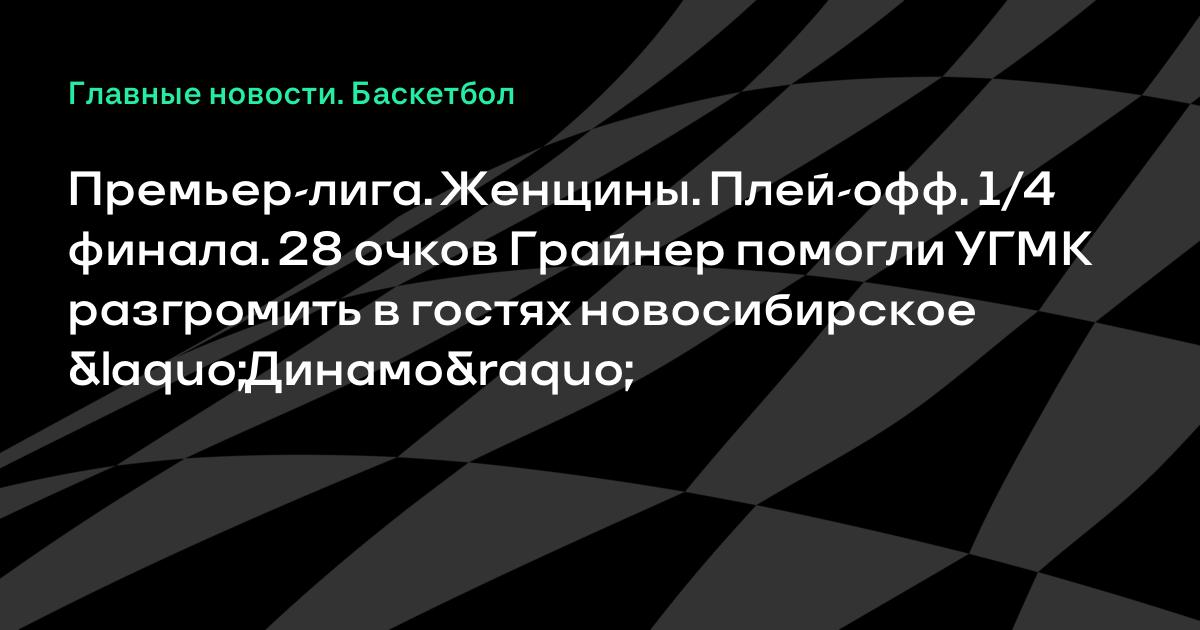 Премьер-лига. Женщины. Плей-офф. 1/4 финала. 28 очков Грайнер помогли УГМК разгромить в гостях новосибирское «Динамо»