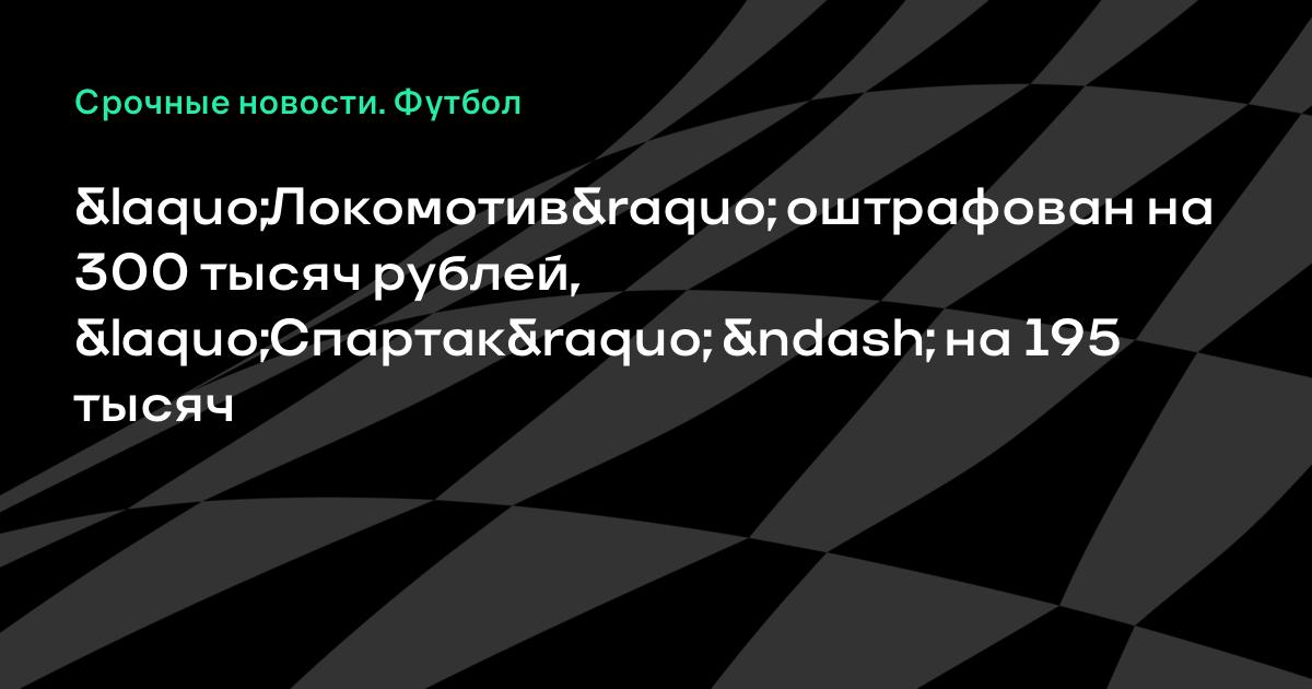 «Локомотив» оштрафован на 300 тысяч рублей, «Спартак» – на 195 тысяч