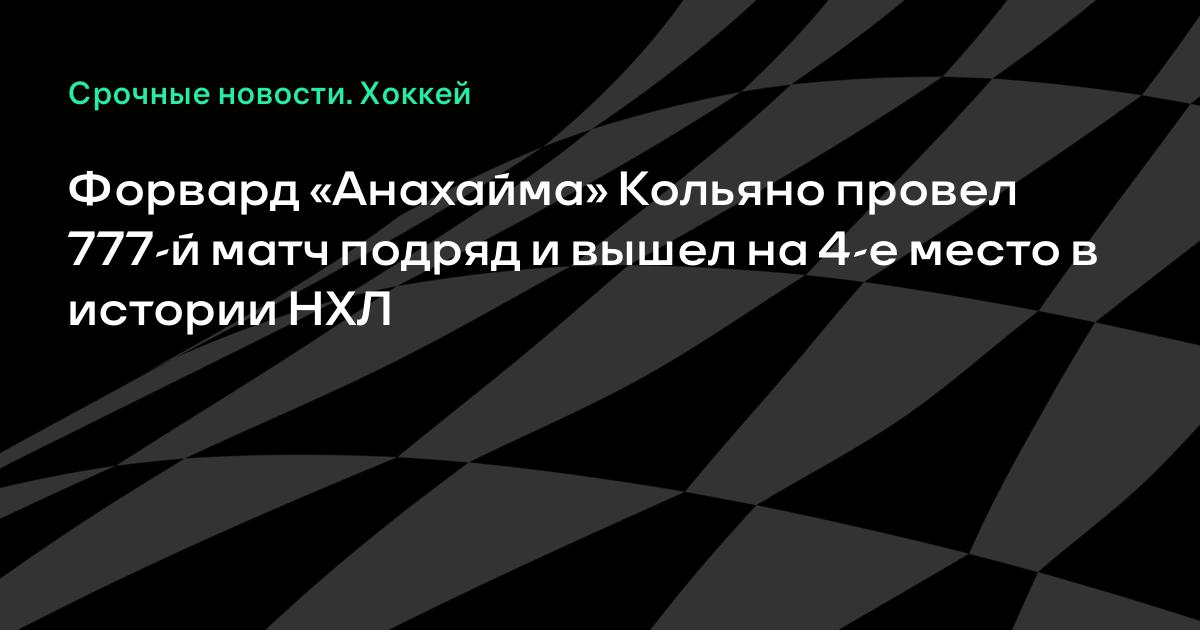 Форвард «Анахайма» Кольяно провел 777-й матч подряд и вышел на 4-е место в истории НХЛ