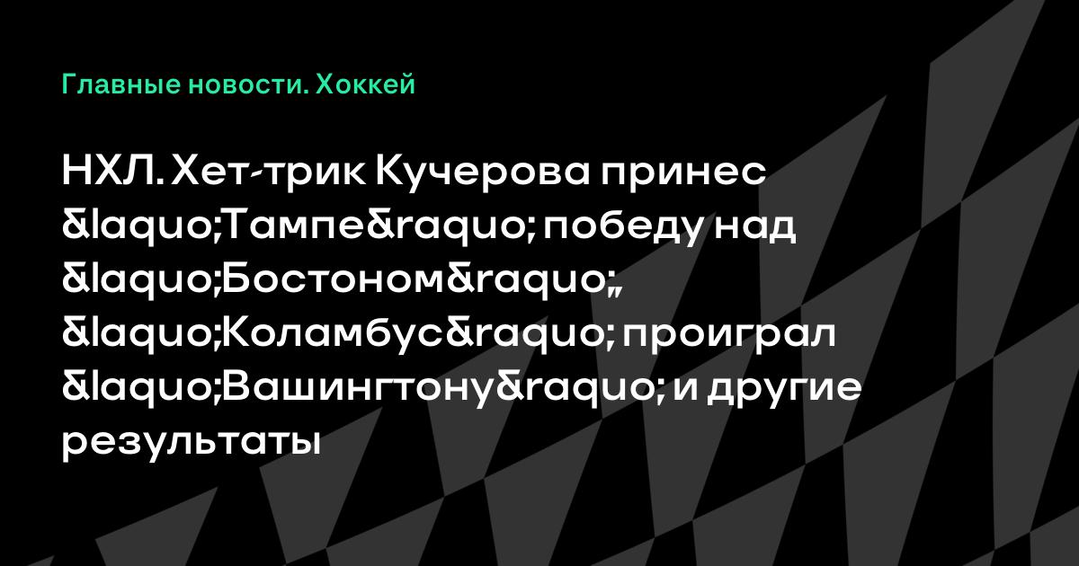 НХЛ. Хет-трик Кучерова принес «Тампе» победу над «Бостоном», «Коламбус» проиграл «Вашингтону» и другие результаты
