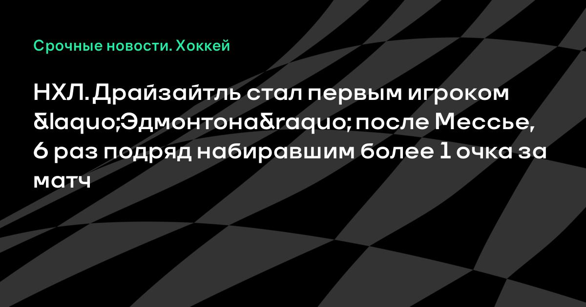 НХЛ. Драйзайтль стал первым игроком «Эдмонтона» после Мессье, 6 раз подряд набиравшим более 1 очка за матч