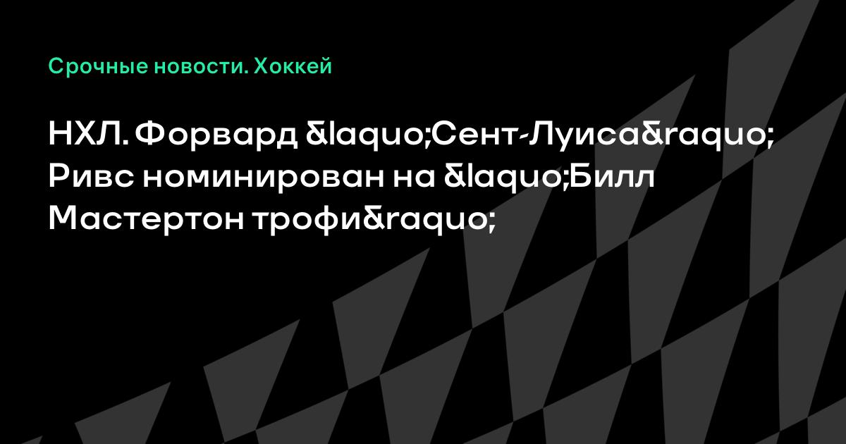 НХЛ. Форвард «Сент-Луиса» Ривс номинирован на «Билл Мастертон трофи»