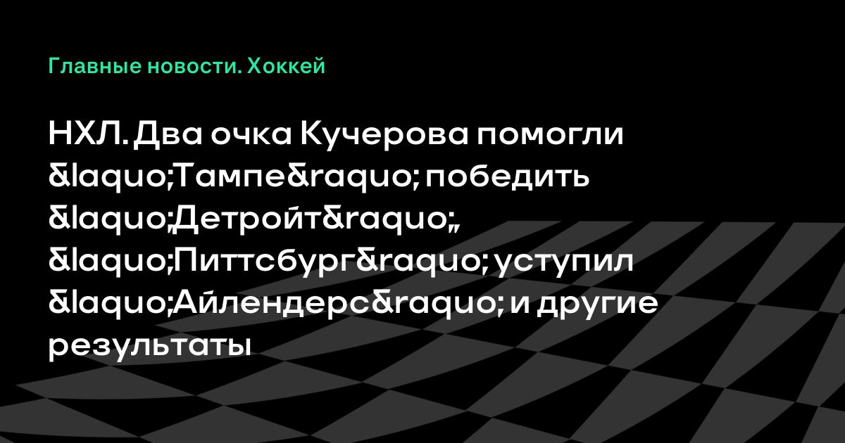 НХЛ. Два очка Кучерова помогли «Тампе» победить «Детройт», «Питтсбург» уступил «Айлендерс» и другие результаты