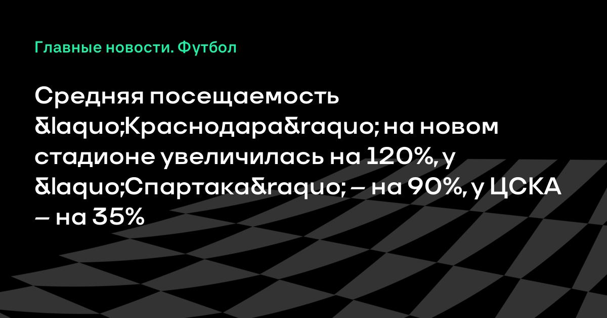Средняя посещаемость «Краснодара» на новом стадионе увеличилась на 120%, у «Спартака» – на 90%, у ЦСКА – на 35%