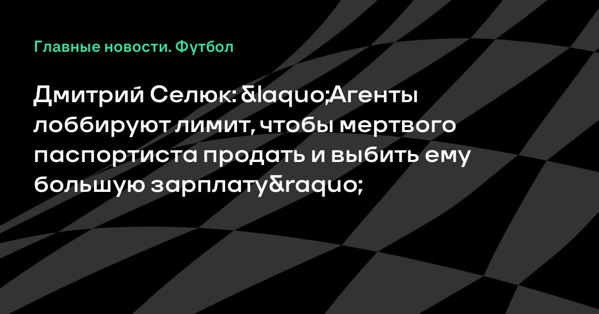 Знаете, какая вещь меня забавляет? Говорят, что российские агенты лоббируют отмену лимита. Но это не так, конечно! Именно они и лоббируют лимит. Чтобы мертвого игрока с российским паспортом продать и положить ему зарплату в три миллиона… Им же не надо напрягаться. А если не будет лимита, агентам придется попотеть. А тут у тебя есть россиянин под рукой – полный вперед! Кладешь ему зарплату в два миллиона и имеешь проценты», – сказал Селюк.