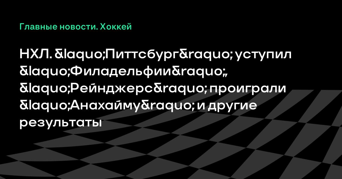 НХЛ. «Питтсбург» уступил «Филадельфии», «Рейнджерс» проиграли «Анахайму» и другие результаты